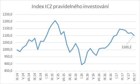Index ICZ pravidelných investic do akciových podílových fondů v červenci 2017 poklesl meziměsíčně o 1,49 % na 1 103,2 bodu. Záporný výsledek přitom vykázalo 72,7 % sledovaných akciových fondů. Mezi desítkou podílových fondů s největším propadem se v největším počtu umístily podílové fondy zaměřené na akcie realitních a developerských společnosti z celého světa.