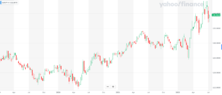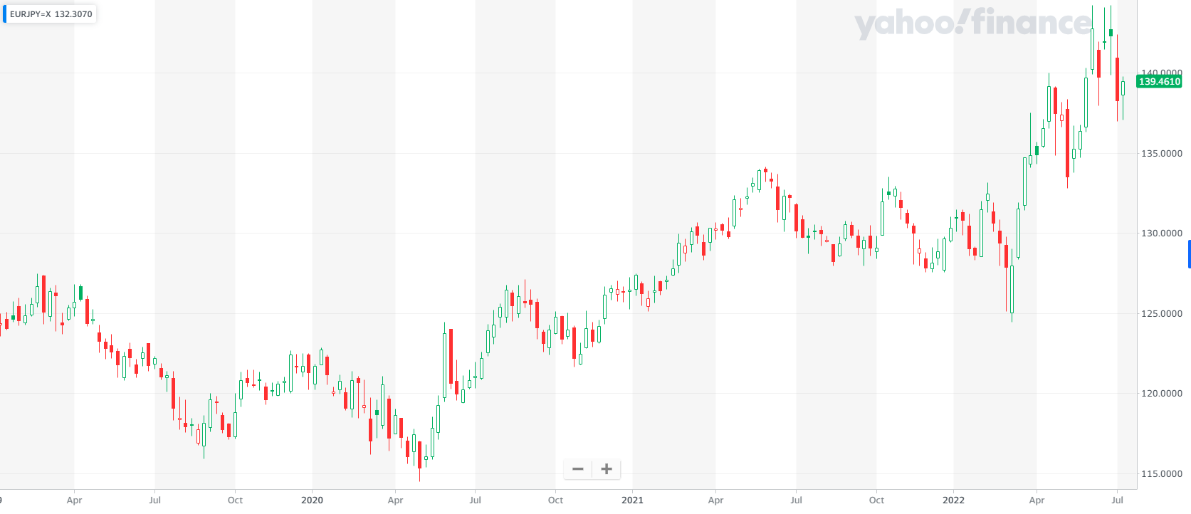 Měnový pár EUR/JPY – zdroj: Yahoofinance.com
