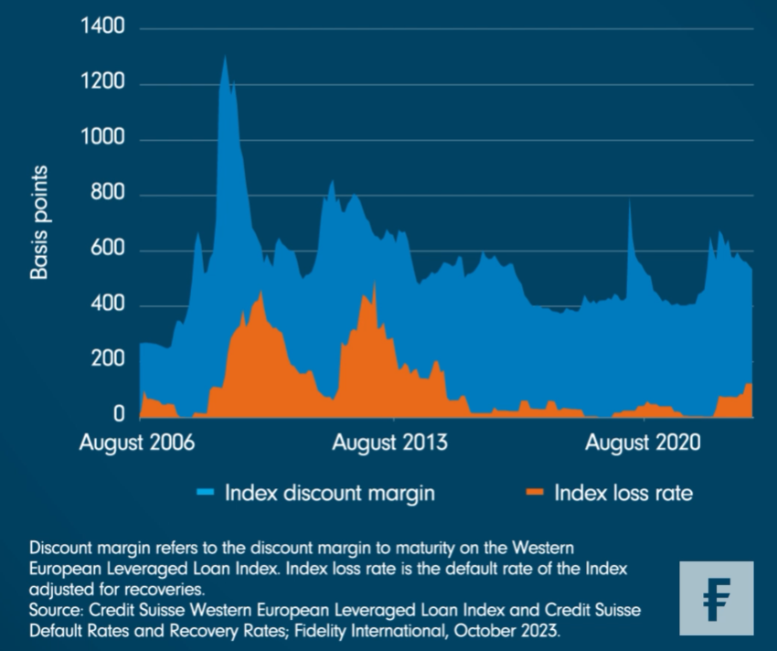 Na základě současných projekcí Fidelity International očekává, že nadměrné spready dál budou předbíhat selhání. Ratingová agentura Fitch v současné době ve svém základním scénáři předpovídá 4% míru selhání do konce roku 2024. Pokud by k tomu došlo, analýza FI naznačuje, že by západoevropský úvěrový index měl stále přinášet nadměrné rozpětí 374 bazických bodů nad tříměsíčním Euriborem (na základě 60procentní míry návratnosti).