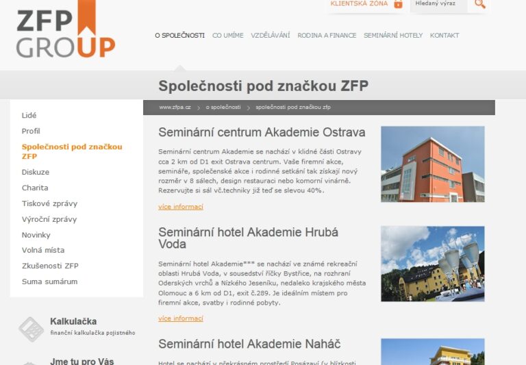 ZFP akademie patří k největším finančně zprostředkovatelským společnostem. Jako snad jediná z velkých v Česku si neříká finančně poradenskou společností a hlásí se k „samospotřebitelskému modelu“, kdy si (v kostce) lidé sami na základě školení kupují produkty, které uznají za vhodné. Její roční provizní obrat se pohybuje kolem 1 mld. Kč a brousí i do dalších odvětví. Nyní ji čekají změny.
