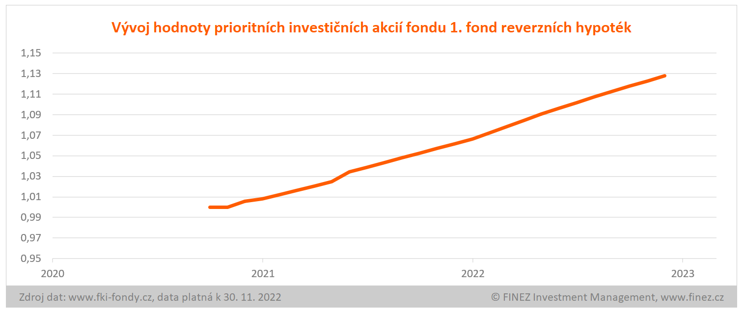 1. fond reverzních hypoték nemá klasický výkonnostní poplatek, ale na výnosech nad 5 % participují externí investoři jen z poloviny, druhá polovina připadá na výkonnostní investiční akcie zakladatelů fondu. To platí dlouhodobě.