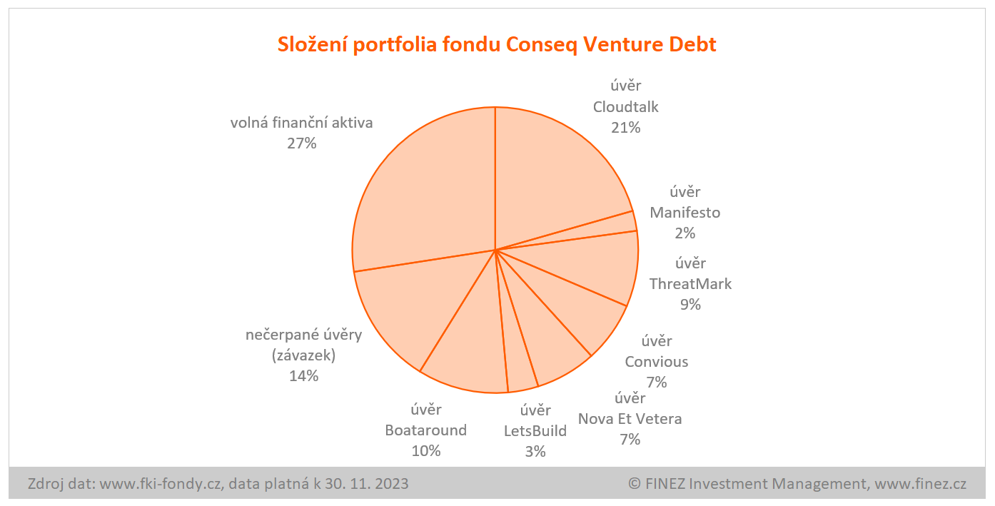 V praxi se standardně jedná o vysoce úročený úvěr v kombinaci s tzv. equity kickerem, čili opcí na minoritní podíl na společnosti. Aktuálně fond financuje sedm projektů: Manifesto, Cloudtalk, Let’s Build, ThreatMark, Boataround, Convious a Nova Et Vetera. Fond také již dříve poskytl úvěrové financování pro Rohlík.cz, Twisto a Vehiculum. Tyto úvěry jsou už splacené. Volnou hotovost zpravidla ukládá u ČNB za repo sazbu prostřednictvím fondu Conseq depozitní.