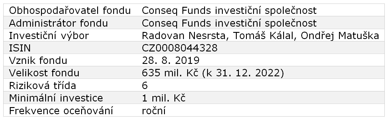 Minimální investice do fondu je 1 milion korun, tak jako u jiných fondů pro kvalifikované investory. Ale pokud má někdo tento limit již u správce fondu splněn v rámci jiných fondů obhospodařovaných Conseq Funds investiční společností, pak je možné do fondu investovat i menší částky od 100 tisíc korun.