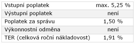 Za správu si Fidelity strhává automaticky z majetku fondu 1,5 % ročně. Tento poplatek stejně jako další náklady na správu fondu jsou již zahrnuty v hodnotě akcií fondu. Celkové náklady na správu fondu vychází na 1,91 % ročně.