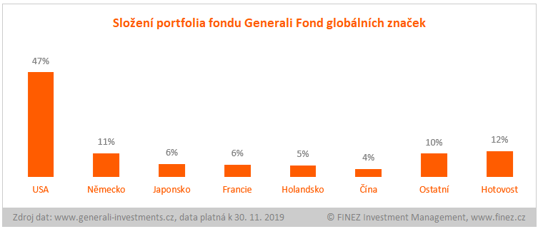 Generali Fond světových značek investuje do akcií společností, které působí na globálních trzích, a které mají významnou tržní pozici, komparativní výhodu vůči svým konkurentům a silnou světovou značku (značku, která má povědomí v mnoha zemích po celém světě). Jedná se primárně o společnosti z rozvinutých zemí, zejména pak USA, západní Evropy a Japonska.