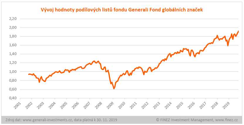Generali Fond světových značek dnes spravuje 3,7 miliard korun, a patří tak k největším českým akciovým fondům. Za 18 let fungování zhodnotil investorům majetek zhruba na dvojnásobek, což odpovídá čistému výnosu cca 4 % p.a. Na desetileté periodě má nyní čistý výnos zhruba 7,5 % p.a. Historickými výsledky se tak řadí k nejúspěšnějším fondům v ČR. V roce 2019 zatím od ledna vydělal investorům 21 %.