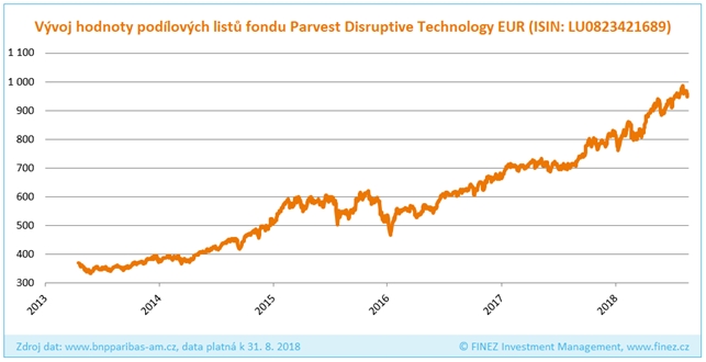 Korunová varianta fondu funguje teprve od května letošního roku. Eurová varianta vznikla pět let před korunovou, tedy v květnu roku 2013. Od té doby hodnota podílových listů fondu Parvest Disruptive Technology stoupla o neuvěřitelných 164 % (20 % p.a.)