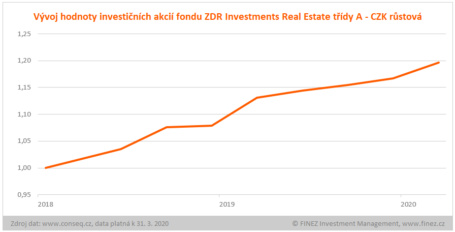 Fond ZDR Investments Real Estate funguje teprve třetím rokem. V letech 2018 i 2019 dosáhl čistého výnosu kolem 8 %. Letos zatím za první kvartál stoupla hodnota investičních akcií fondu o 2,5 %. Od počátku fungování tak už vydělal investorům 20 %, což odpovídá čistému anualizovanému výnosu 8,6 % p.a. To ho řadí k nejúspěšnějším nemovitostním fondům v ČR.
