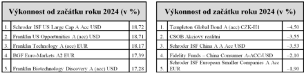 Více se obecně dařilo fondům, v jejichž portfoliích se nacházely spíše růstové akcie. S větším odstupem zaostaly fondy s větší váhou v britských, latinskoamerických a čínských akciích. Čína se v očích investorů nadále potýká s nejistotou budoucího ekonomického vývoje, zatíženého slabou domácí poptávkou a krizí v realitním sektoru.