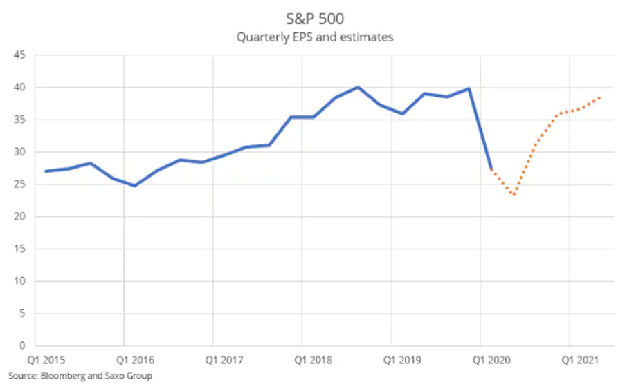 V rámci indexu S&P 500 klesly v 1. čtvrtletí výnosy na akcii mezikvartálně o 31,5 % a na 2. čtvrtletí byl k 30. červnu odhadován mezikvartální propad o dalších 14,5 %. To sice na první pohled vypadá jako jednoznačný recept na pohromu na akciových trzích, investoři se však již zaměřují na druhou stranu výnosové propasti v očekávání rychlého zotavení ekonomiky i korporátních výnosů ve tvaru V.