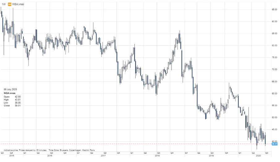 Společnost Walgreens tento týden oznámila své výnosy a její EPS zůstaly 30 % pod původními odhady. Výhledy na FY20 (tedy finanční rok 2020) byly 13 % pod odhadovanými ciframi. Jen ve Velké Británii bylo zrušeno 4000 pracovních míst a dočasně byl pozastaven program zpětného odkupu akcií. Takové výhledy investory dvakrát nepotěšily a cena akcií se propadla o 8 %. A protože 80 % firem z indexu S&P 500 stáhlo v 1. čtvrtletí své prognózy, investoři se v podstatě vrhají do bouřlivých vod naslepo. Nyní je hlavní otázkou, zda firmy nějaké prognózy znovu zveřejní, a pokud ne, jako budou investoři reagovat? Pokud lze soudit z výnosů firmy Walgreens, bude výsledková sezóny 2. kvartálu dost dramatická, takže nepřekvapí, že se index VIX nadále drží kolem 30.