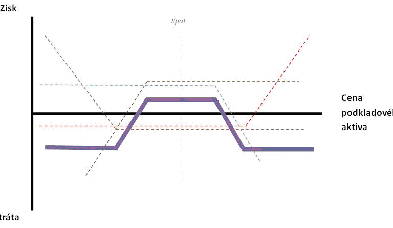 Long verze Iron Condora je kombinací Short Put opce OTM, Long Put, která je více OTM než Short Put, Short Call OTM a Long Call, která je více OTM než Short Call. Zní to složitě, nicméně princip je opravdu jednoduchý.