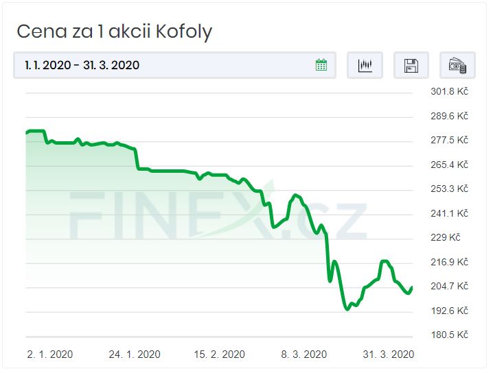 Graf akcií Kofoly – Vývoj ceny od začátku roku