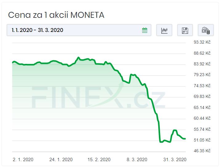 Akcie Moneta zareagovaly propadem, a to až na 49,80 Kč za akcii, čímž ztratily 17 %. Banka očekává vlivem koronaviru také pokles provozního zisku. Dopad plánuje zmírnit úspornými opatřeními a přehodnocením investiční strategie.