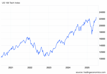 Již v úvodu jsme naznačili, že investoři si závažnost situace velmi dobře uvědomují a zároveň hledají způsob, jak ji využít ve svůj prospěch. Nepochybně je možné identifikovat vícero specifických rizik, ale historie nás učí, že najít období, kdy by bylo tržní prostředí zcela bez negativních vlivů, je prakticky nemožné. Vzhledem k tomu je pro prozíravé investory rozumné část kapitálu přesunout do aktiv, která by diverzifikovala jejich portfolio z hlediska měn či geografického původu. Na závěr lze dodat, že z investičního hlediska zůstávají Spojené státy i nadále silnou cílovou destinací. To reflektuje i růst akciového trhu, reprezentovaný například indexem Nasdaq 100, který se opět blíží svému historickému maximu.