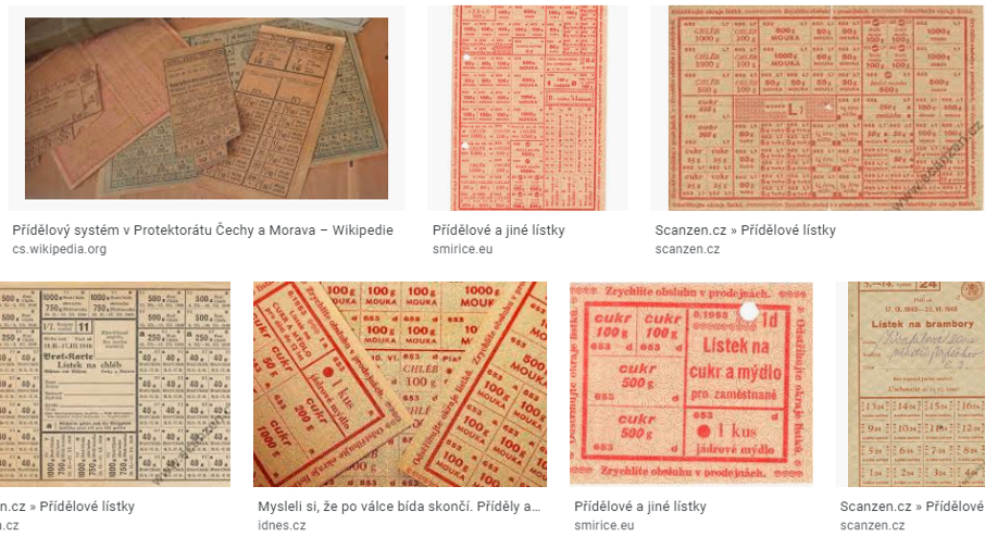 Obrázek 2: Přídělový systém a přídělové lístky se staly nástrojem péče o cenovou stabilitu. Existoval i černý trh, ale tam byly ceny mnohem vyšší.