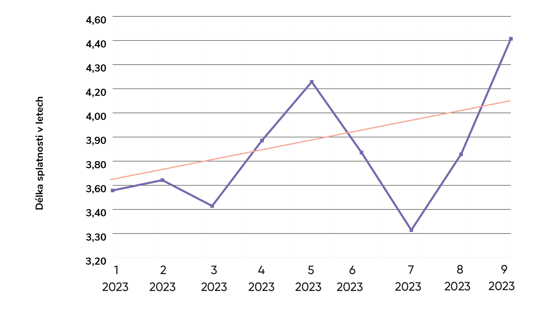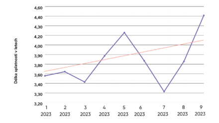 Září byl zajímavý tím, že průměrná splatnost emisí byla vysoko nad trendem. Zatímco obvykle činí splatnost 4 roky, v září to bylo 4,4 roku, což je letošní rekord.