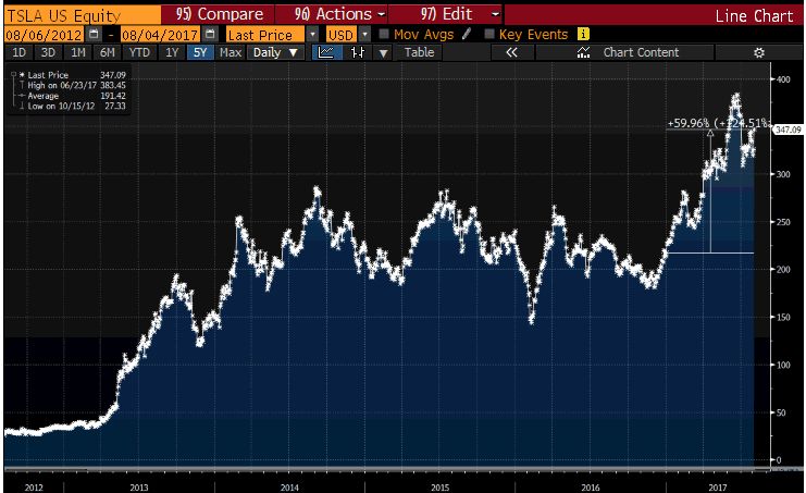 Tesla svou hodnotu staví hlavně na odlišném designu, nových technologiích, marketingu a osobnosti Elona Muska. A právě ten marketing pomáhá Elonu Muskovi získávat stále nové investory. Hodnota akcií tak od dubna letošního roku víceméně roste, včera se akcie prodávaly přes 1600 dolarů za kus. To dělá z Tesly nejhodnotnější automobilku na světě, alespoň podle tržní kapitalizace. A to i přesto, že oproti dalším automobilkám prodává několikanásobně méně automobilů.