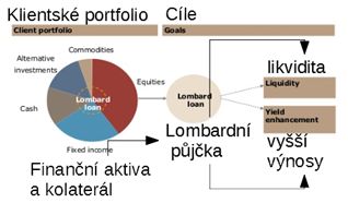 Obrázek 2: Jak zachycuje reklamní prospekt, klient vlastní portfolio, které slouží jako záruka za poskytnutou lombardní půjčku poskytující likviditu a zvyšující dosažitelné výnosy
