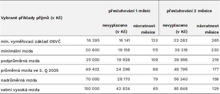 Abychom si mohli udělat jasnější představu, kdy se tato „ztráta“ vykompenzuje výplatou vyššího důchodu, jsou v tabulce č. 2 názorně uvedeny jednotlivé příklady doby návratnosti této „ztráty“ při posunutí data přiznání důchodu o jeden nebo dva měsíce (platí pro případy, kdy přesluhováním nedojde k získání dalšího roku pojištěni; viz níže).