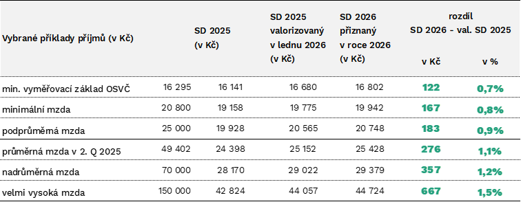 Dále se v roce 2026 v důsledku zavedení důchodové reformy změnil i výpočet procentní výměry důchodu. Z osobní vyměřovacího základu se do částky I. redukční hranice nezapočte 100 %, ale 99 %.