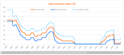 Česká národní banka v červnu zvýšila úrokové sazby. Základní repo sazbu zvedla o 25 bazických bodů na 0,5 % a lombardní sazbu o 25 bazických bodů na 1,25 %. Diskontní sazba zůstává na 0,05 %. Ačkoliv rozhodnutí bankovní rady nebylo jednomyslné (pro zvýšení bylo pět ze sedmi členů bankovní rady), ČNB zároveň v prohlášení vyslala signál, že pokud bude ekonomický vývoj v souladu s jejich prognózou, bude ve druhém pololetí sazby dál zvyšovat, a to pravděpodobně už v srpnu.