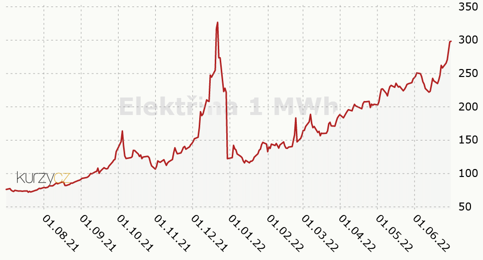 Cena elektřiny stále stoupá, naopak ceny akcií dál prudce padají. ČNB s rekordní inflací opět zvedla úrokové sazby. Dolar posílil a blíží se euru.