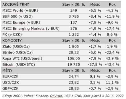 Vývoj na finančních trzích – červen 2022
