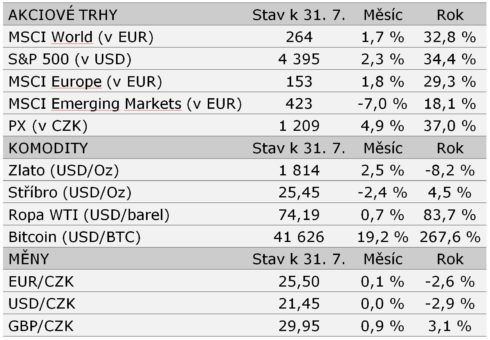 Vývoj na finančních trzích – červenec 2021