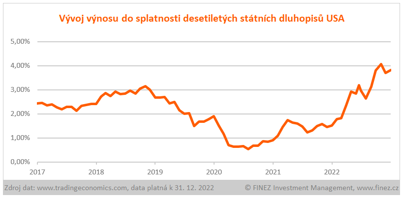 Prozatím rostou hlavně úroky u dluhopisů s krátkou dobou do splatnosti. Kupříkladu šestiměsíční americké treasury bills nesou úrok kolem 5 % p. a., ale u desetiletých amerických dluhopisů se výnos do splatnosti drží kolem 3,75 %. Tedy na trhu převládá očekávání, že Fed bude ještě zvedat úrokové sazby někam k 5 %, ale posléze je začne zase poměrně rychle snižovat, aby podpořil ekonomické oživení. Sám guvernér Fedu ale říká, že počítá s udržováním vyšších úrokových sazeb po delší dobu.