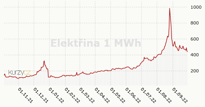 Také cena plynu a elektřiny v září výrazně povolila. Cena plynu na burze v Holandsku klesla pod 200 euro za MWh a cena elektřiny na německé burze klesla pod 450 euro za MWh. To jsou stále hodně vysoká čísla, ale zdá se, že trh se již začíná uklidňovat. Významně k tomu přispívá záměr EU zastropovat ceny u producentů. Pomohlo také oznámení Německa, že ponechá v provozu dvě jaderné elektrárny až do jara. Daří se také nad očekávání rychle budovat nové terminály na zkapalněný plyn. Díky tomu začaly ceny energií klesat. A pokud zlevní energie a pohonné hmoty, podaří se ztlumit inflaci.