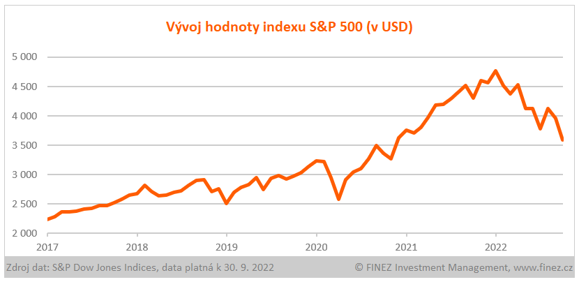 Akciové trhy zažily v září další výplach. Padaly v zásadě ceny akcií napříč všemi trhy, výjimkou byl pouze trh v Brazílii, Mexiku a Indonésii. Z pohledu sektorového ustál nejlépe zářijové propady farmaceutický průmysl, jinak ale žádný sektor propadům neunikl, tentokrát padaly ceny plošně všech akcií. Do značné míry je to důsledek trendu indexového investování. Hodnota nejsledovanějšího indexu S&P 500 klesla v září o 9 % a od začátku roku už spadla o 25 %.
