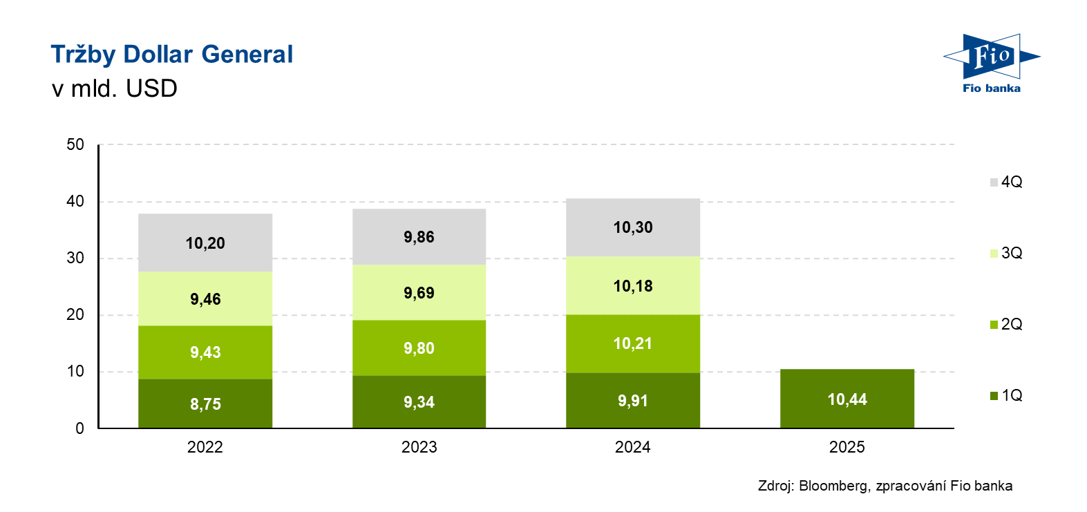 | Tržby (mld. USD) | 10,44 | 10,28 | 9,91 |