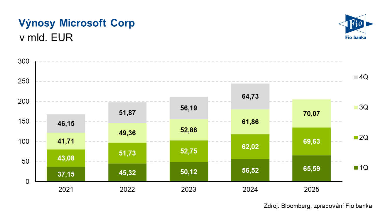 Americký technologický gigant Microsoft ve středu po uzavření trhu zveřejnil hospodářské výsledky za 3. čtvrtletí fiskálního roku 2025. Společnost překonala očekávání v klíčových metrikách, přičemž hlavním tahounem byl cloudový segment, který nadále těží z rostoucí poptávky po službách spojených s umělou inteligencí