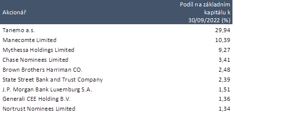 Tykačova společnost Manecomte Limited k 30. září 2022 navýšila podíl držených akcií na 10,39 %. K 31. srpnu činil podíl Manecomte 6,74 %.