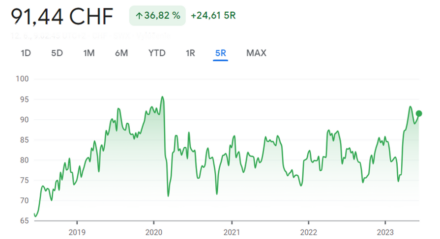 Výkonnost akcií společnosti Novartis za posledních pět let. (Zdroj: Google) *