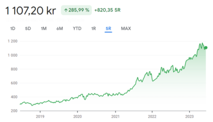 Výkonnost akcií společnosti Novo Nordisk za posledních pět let. (Zdroj: Google) *