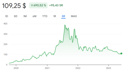 Výkonnost akcií společnosti BioNTech za posledních pět let. (Zdroj: Google) *