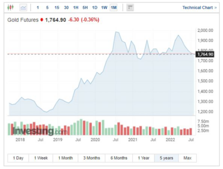 Růst úrokových sazeb způsobil, že dolar ve velké míře předběhl zlato jako preferovaný „bezpečný přístav“ v bouřlivých časech na kapitálových trzích. Vzal mu tím pověstný „vítr z plachet“, kterého zlato dosáhlo po vypuknutí války na Ukrajině, když opět prolomilo hranici 2000 USD za unci.