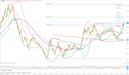Dolarový index se už od roku 2015 pohybuje ve velmi širokém pásmu mezi 88 a 103 a teď se ho znovu pokouší prolomit směrem výš.