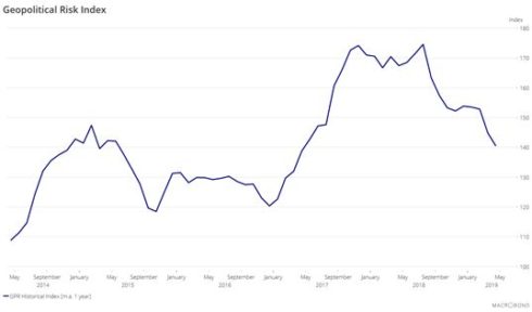 Snížení Indexu geopolitických rizik odráží víru, že brzy dojde k uzavření obchodní dohody mezi Spojenými státy a Čínou. Tento index představuje ukazatel aktuálního globálního napětí. Přestože nyní došlo k poklesu, stále zůstává na vysoké úrovni.