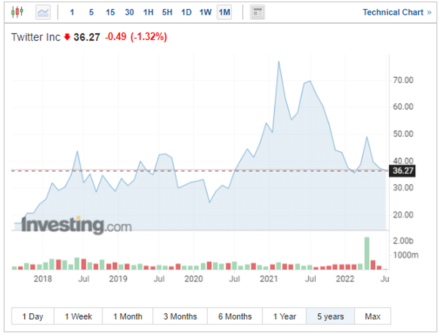 Společnost Twitter se rozhodla zažalovat zakladatele společností Tesla a SpaceX Elona Muska. Jelikož chtějí, aby dokončil akvizici v hodnotě 44 miliard dolarů. Podle agentury Reuters je důvodem žaloby údajně porušení dohody o koupi sociální sítě za 54,20 USD za akcii. Musk oznámil odstoupení od smlouvy na začátku července 2022.