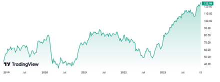 Za poslední rok akcie General Electric vzrostly o 78 %, zatímco odvětví jako celku se ve stejném období ve srovnání s nimi příliš nedařilo a ještě v druhé polovině prosince se pohybovalo v záporných číslech. Podíváme-li se na pětiletou výkonnost akcií General Electric, zjistíme, že jejich hodnota vzrostla o 98 procent*.