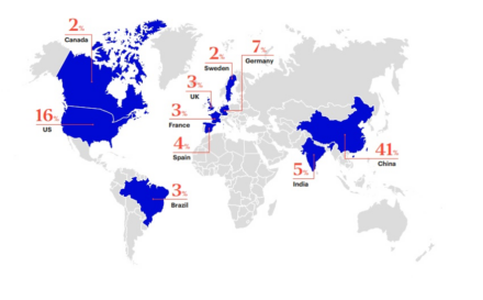 Graf: Procento z celkového instalovaného výkonu větrných elektráren 837 GW v roce 2021