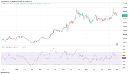 Obrázek 1. Výkonnost XAUUSD za posledních pět let (zdroj: tradingview.com)