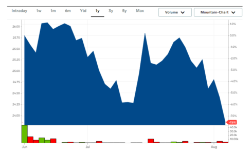 Společnost About You vstoupila na burzu ve Frankfurtu nad Mohanem již v polovině června. Emisní cena za akcii byla stanovena na 23 EUR za kus, přičemž v průběhu dne vzrostla cena akcií až o 17 procent.* V prvních dnech obchodování překročila hranici 26 EUR za akcii. Od té doby však uběhlo už několik týdnů a zdá se, že hodnotě společnosti dochází na burze dech.