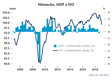 Na vině jsou vedle (pravděpodobně jednorázových) problémů automobilek s novými emisemi i trvalejší faktory. Především rostoucí politická rizika (brexit a obchodní přestřelky) a slábnoucí Čína výrazněji omezují globální investice. To se odráží jednak ve slabších vývozech, ale současně ve slabších investicích.