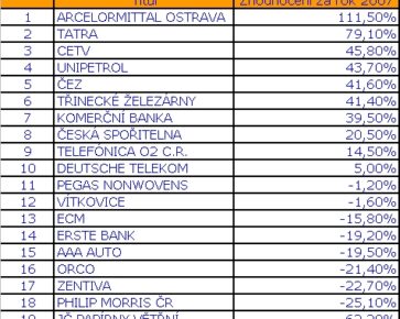 Vítězem roku 2007 se stávají akcie ArcelorMittal Ostrava se zhodnocením 111%. A co ostatní akcie v EasyClicku na trhu RM-SYSTÉM?