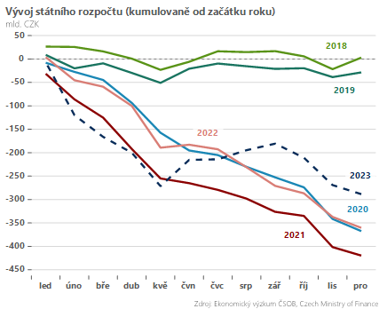 Státní rozpočet skončil loni ve schodku 289 mld. Kč