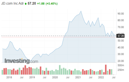 Výsledky akcií JD.com Inc Adr za posledních 5 let. Zdroj: investing.com